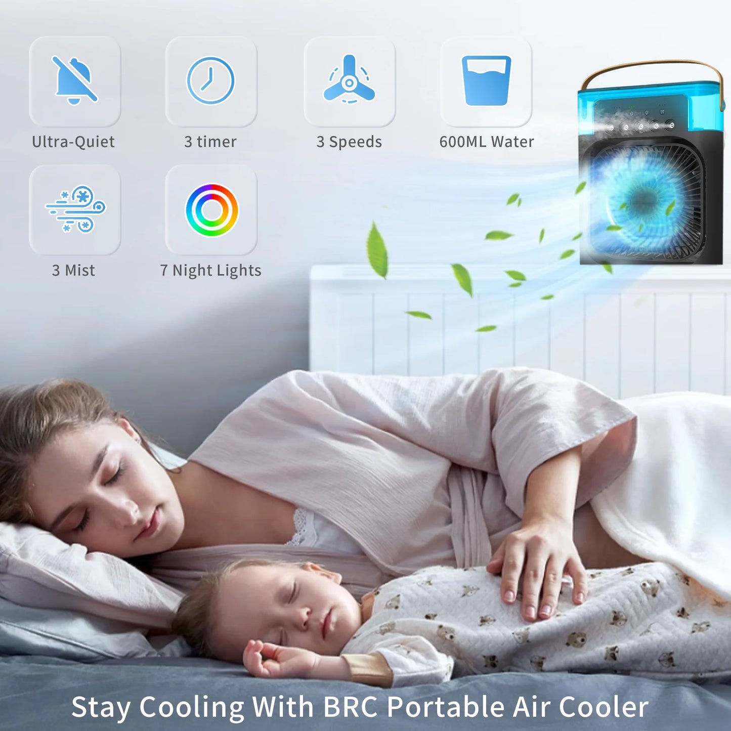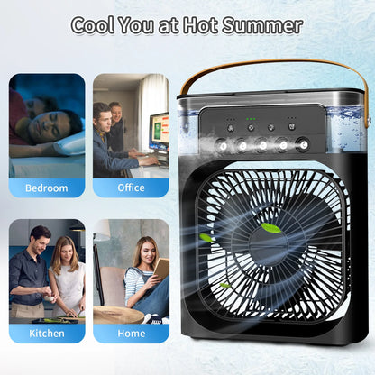 Portable Air Conditioners, Personal Air Cooler with Timer, 3 Speeds & 7 Colors Nightlight, USB Mini Cooler Fan for Bedroom, Office, Quiet, Black